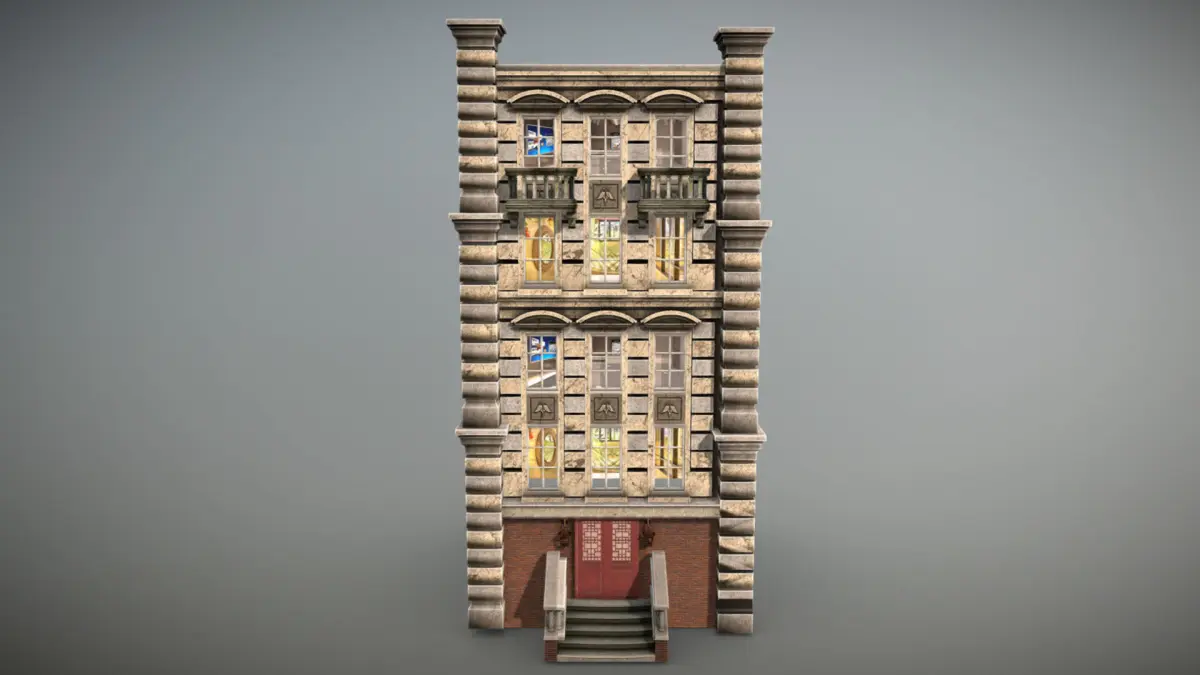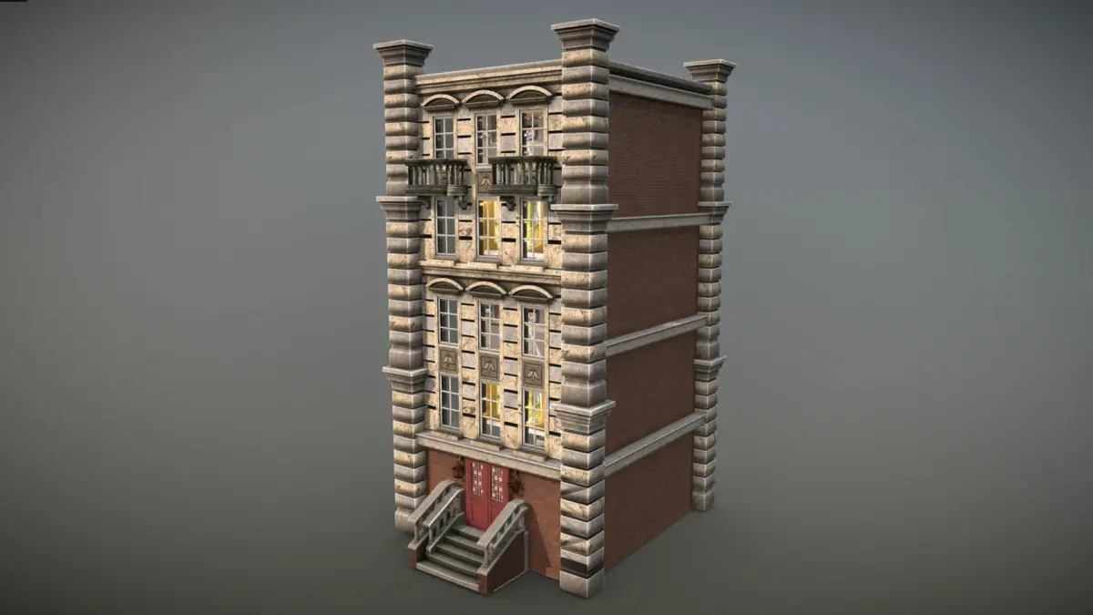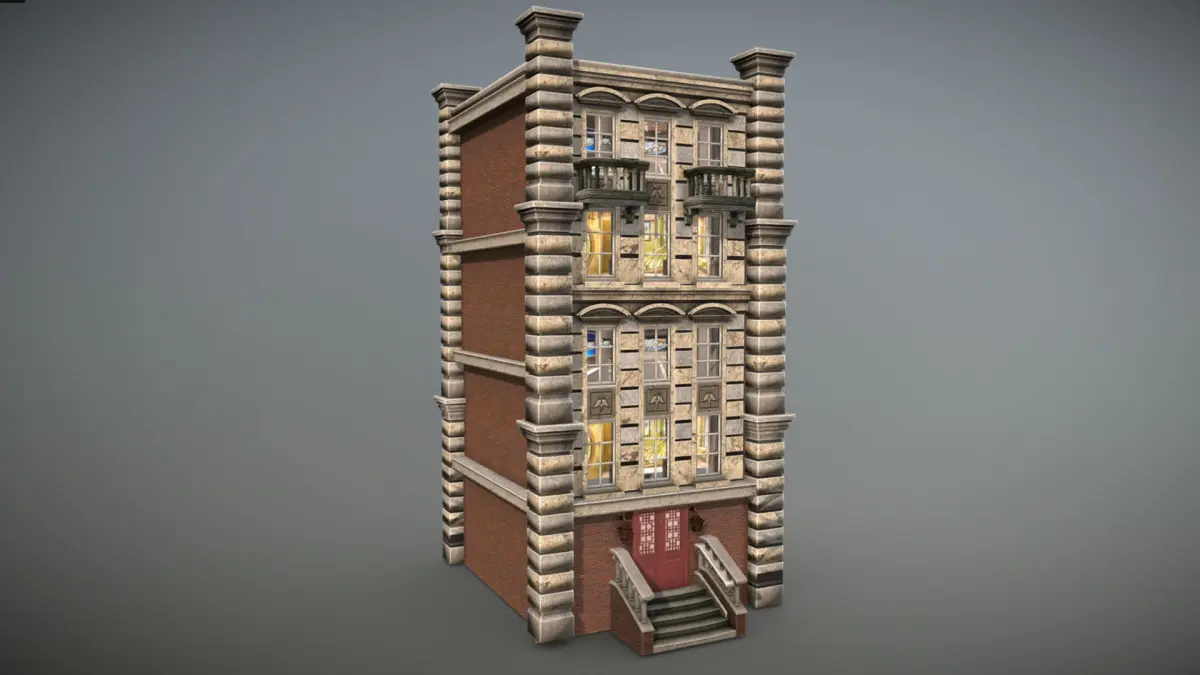 The following meshes are included: building, door, lamps, balconies and stairs.