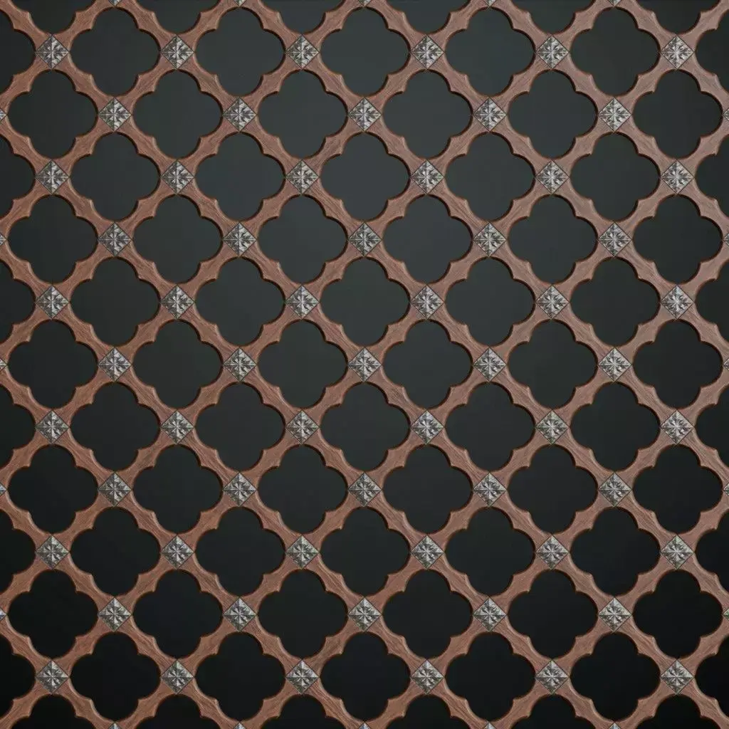 This is a PBR Texture Pack of Gothic Carved Wood Lattice with Iron Quatrefoil Studs. All the Maps Such as BaseColor / Normal / Roughness/ Height/ Metallic/ Opacity are provided as per Requirement. This material is provided in 2K resolution (If you need High Quality Material 4K / 8K or 16K make sure to contact us). Blender Native file is Provided and a Separate PBR Textures folder is also provided That can be used in any 3D software (3ds Max, Cinema 4D, Maya, game engines like Unreal Engine and Unity, and texture painting software like Substance Painter etc.). You are welcome to visit our profile and explore thousands of PBR Materials And This Material is part of Our Best Product 5000+ PBR Asset Browser You can get that too. https://www.cgtrader.com/3d-models/textures/architectural-textures/5000-pbr-materials This asset features a sophisticated open-work design with scalloped oak wood curves joined by ornamental iron plates in a quatrefoil pattern. Includes a precise Opacity map for realistic transparency, making it perfect for cathedral screens, high-end balcony railings, ornate furniture, and historical architectural partitions.
