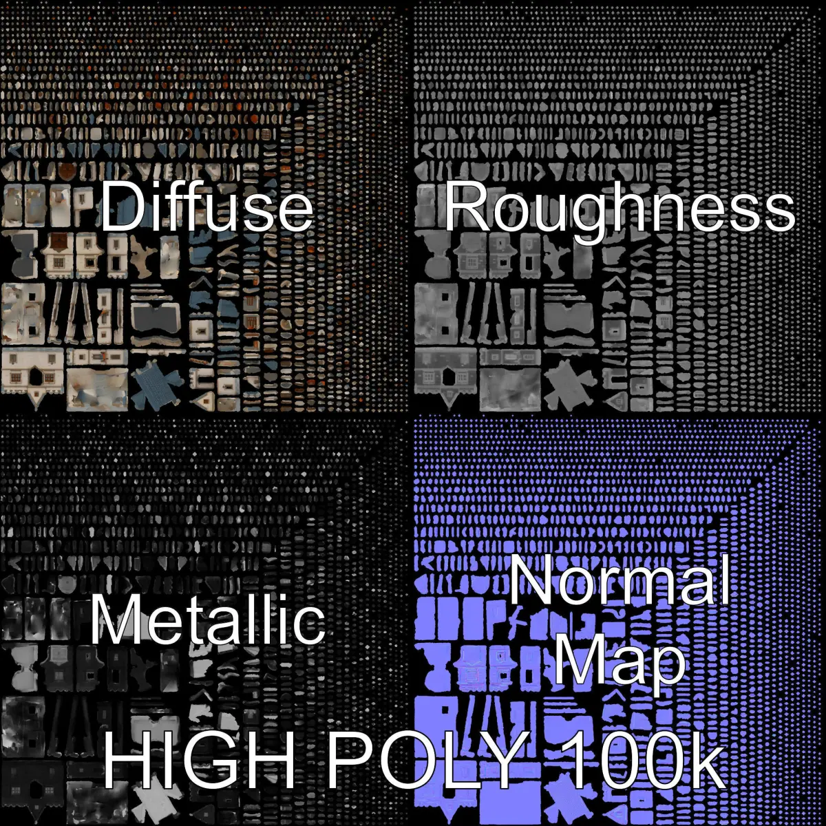 The Gothic Castle Architecture Model Pack offers three levels of detail for versatile applications: low-poly for mobile apps, mid-poly for environment design, and high-poly for detailed production rendering. Compatible with leading game engines like Unity and Unreal, it’s perfect for historical games, virtual tours, and cinematic environments. This model uses PBR textures, including Diffuse, NormalMap, and reflection/roughness/metallic maps, ensuring realism in rendering. With precise, non-overlapping UV unwrapping, these 4096x4096 texture assets are ideal for modern rendering engines. The first image is the reference used for creating the 3D model. It is important to carefully evaluate the quality of the model by examining the preview images that display the topology and polygonal mesh. These previews (WIRE and WEB 3D Preview) clearly demonstrate how accurately the model matches the original reference and how well the geometry has been executed. If you like the model, please leave a comment and a like.