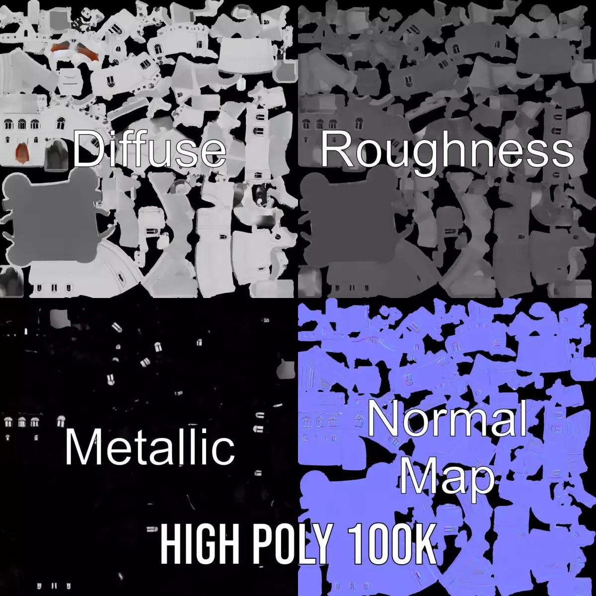 This intricate Gothic Castle architecture model pack features elegant spires and detailed stonework, ideal for historical or fantasy settings. Each model has 3 levels of detail: low-poly (1000 triangles for mobile), middle-poly (10,000 triangles for environment), and high-poly (100,000 triangles), which allows for the use of this model in production rendering (such as 3ds Max, Maya, Cinema4D, Blender, Vray/Corona/Cycles and all others), game engines (Unity and Unreal compatible), and interactive presentations, providing a choice of detail based on the LOD System principle. Perfect for game environments, architectural visualization, or cinematic scenes, this model is both versatile and richly textured. The model's textures are PBR, Diffuse, NormalMap, and reflection/roughness/metallic, which are suitable for any modern rendering engine. All models are accurately unwrapped and have no overlapping UV. All textures are 4096*4096 in size. If you like this model, please leave a comment and like.