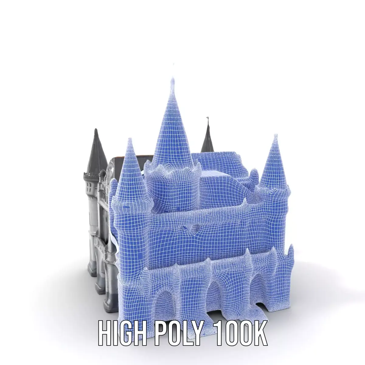Explore the intricacies of a Gothic-style castle designed for historical and fantasy settings. Featuring detailed stone textures and intricate architectural elements, this model enhances any digital environment with its authentic aesthetic. Each model has 3 levels of detail: low-poly (1000 triangles for mobile), middle-poly (10,000 triangles for environment), and high-poly (100,000 triangles), which allows for the use of this model in production rendering (such as 3ds max, Maya, Cinema4D, Blender, Vray/Corona/Cycles and all others), game engines (Unity and Unreal compatible), and interactive presentations, providing a choice of detail based on the LOD System principle. Ideal for video games, simulations, and animations, this model brings Gothic charm to life. The model's textures are PBR, Diffuse, NormalMap, and reflection/roughness/metallic, which are suitable for any modern rendering engine. All models accurately unwrapped and have no overlapping UVs. All textures are 4096*4096 in size. If you enjoy the model, please like and leave a comment!