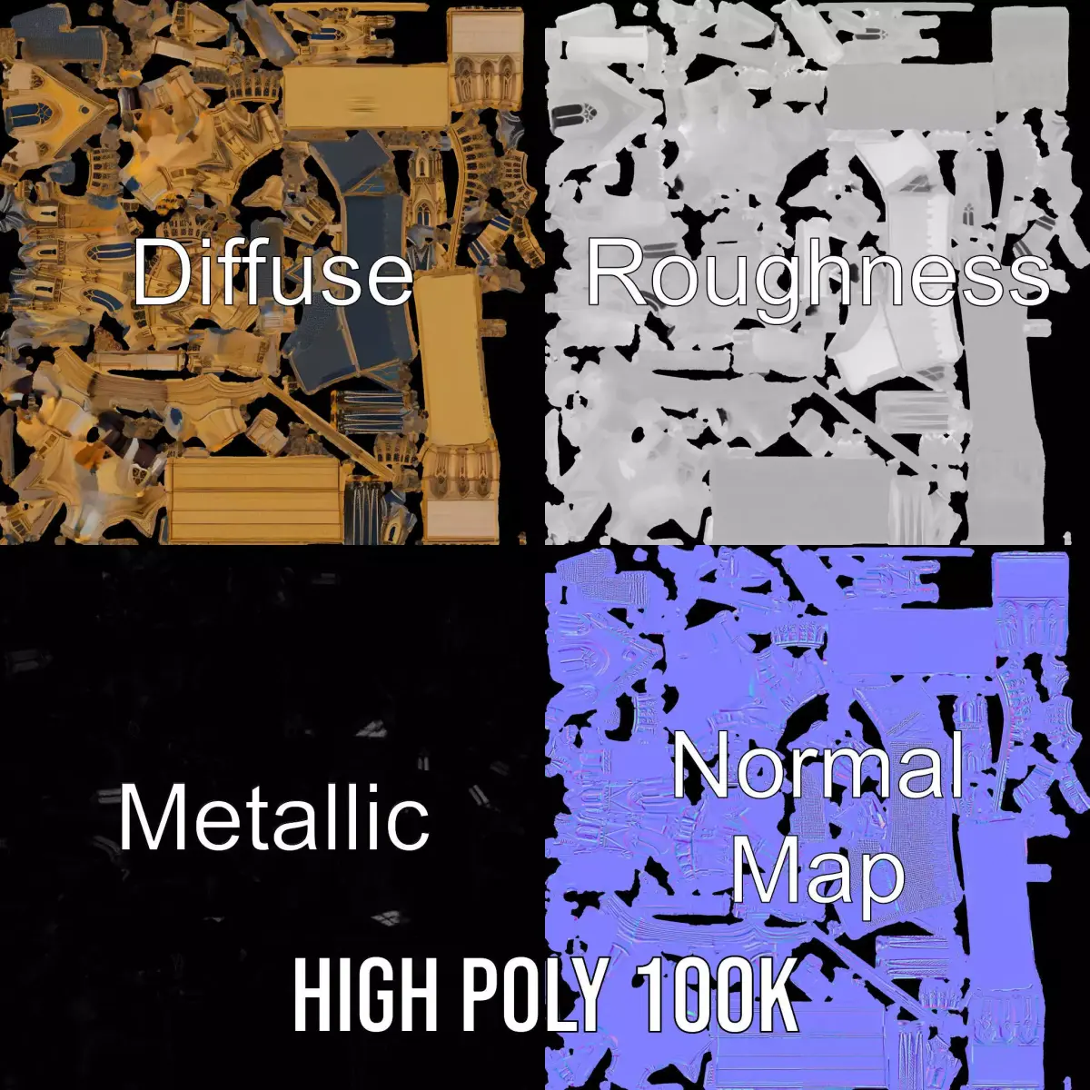 The Gothic Cathedral model is perfect for use in historical simulations, architectural visualization projects, and cultural recreations. It's an excellent asset for games and films needing a high level of detail in religious or historic settings. The model's textures are PBR, Diffuse, NormalMap, and reflection/roughness/metallic, which are suitable for any modern rendering engine. All models are accurately unwrapped with no overlapping UV. Textures are 4096x4096 in size.