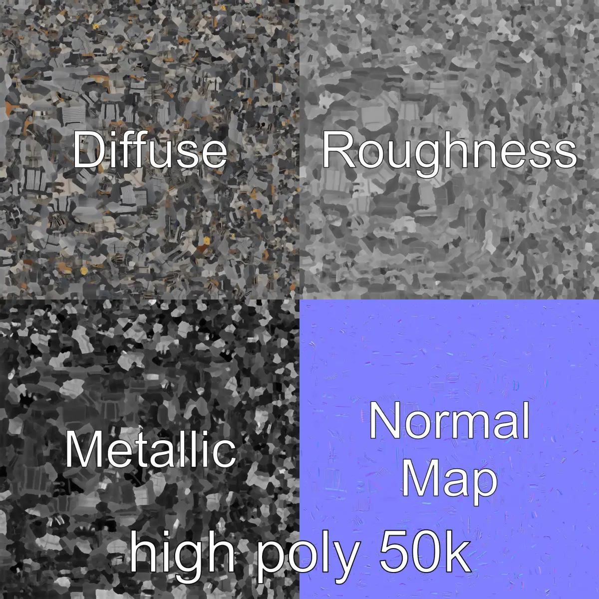The model's textures are PBR, Diffuse, NormalMap, and reflection/roughness/metallic, which are suitable for any modern rendering engine. All models are accurately unwrapped and have no overlapping UVs. All textures are 4096x4096 in size.