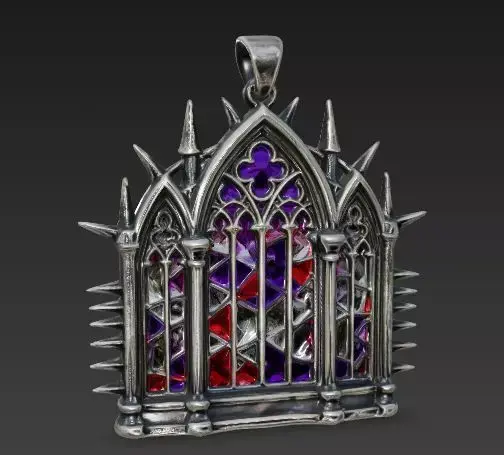 The Overall Concept This piece is a wearable miniature of a dark fantasy cathedral. It captures the grandeur of Gothic architecture, condensing a stained-glass window into a jewelry asset. It works perfectly as a ring face, a pendant, or a sacred talisman for a cleric or vampire character.