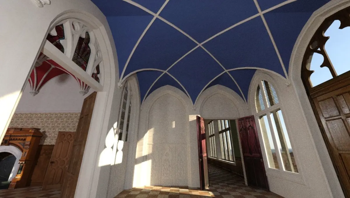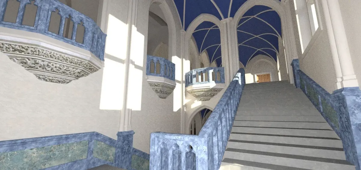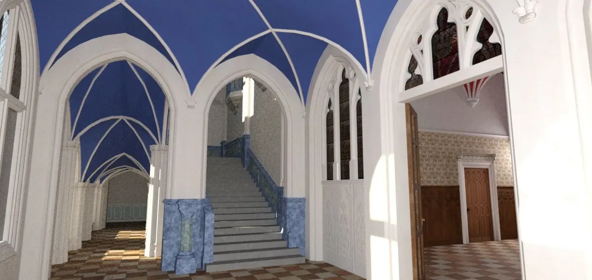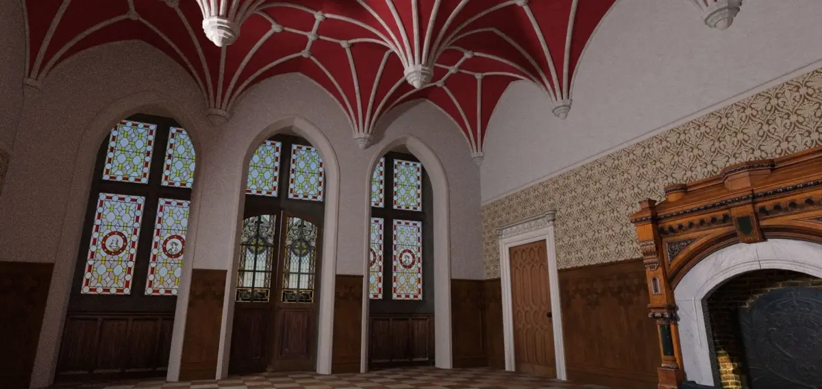 Grand Gothic revival interior based on the (now demolished) Chateau de Noisy, aka Miranda, which formerly existed in Belgium. I made a model of the exterior previously... https://www.cgtrader.com/3d-models/architectural/other/chateau-de-noisy
