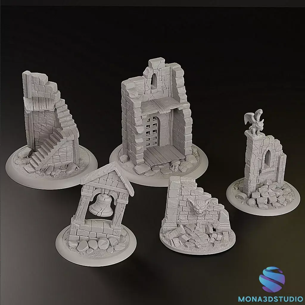 Bring high-definition detail to your battlefield with this set of 5 Gothic ruins, specifically optimized for resin 3D printing.
