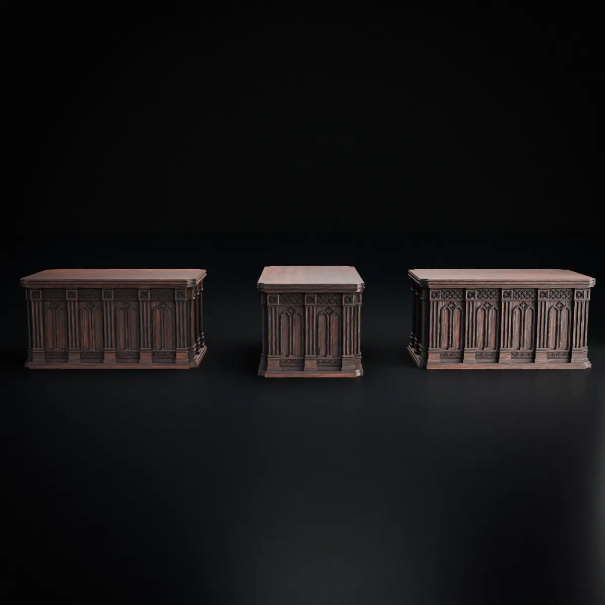14 HIGH QUALITY MODEL OF GOTHIC INTERIOR PROPS ASSETS. INCLUDING Chairs, chandelier, cabinets, tables, etc. Available in 4K and 2K Hi Res Texture with normal maps, roughness maps and metallic maps. this is part of my upcoming gothic environtment pack. be sure to check my page. really good models to use for film or AAA game. texture included. PBR ready. no triangle or ngon. only quad. uv mapped. easy if you want to change the texture.(all pbr texture included in the pack). hope you like it. make sure the check all my model here. thank you.