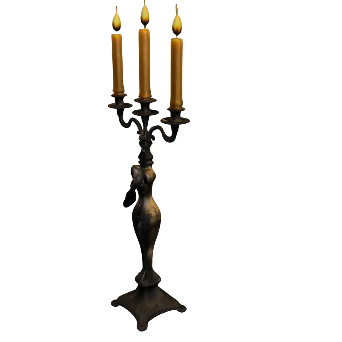 This elegant 3D model features a gothic-style candelabra with a sculpted lady figure as the base, supporting three realistic candles. Perfect for gothic, fantasy, horror, and Victorian-themed environments. Ideal for use in popular platforms like Second Life, VRChat, The Sims, IMVU, Unity, Unreal Engine, and other game development engines.