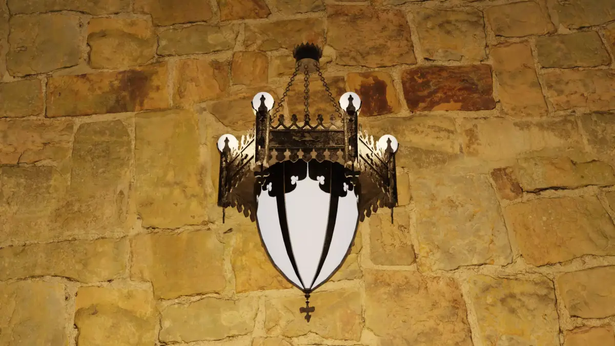 Whether you're designing a medieval game environment, a period church scene, or a fantasy interior, this Gothic Revival lantern provides an atmospheric and architecturally grounded centerpiece. Background not included. See https://archive.org/details/LightingEquipment.CatalogueNo.14 page 78 for illustrated reference.
