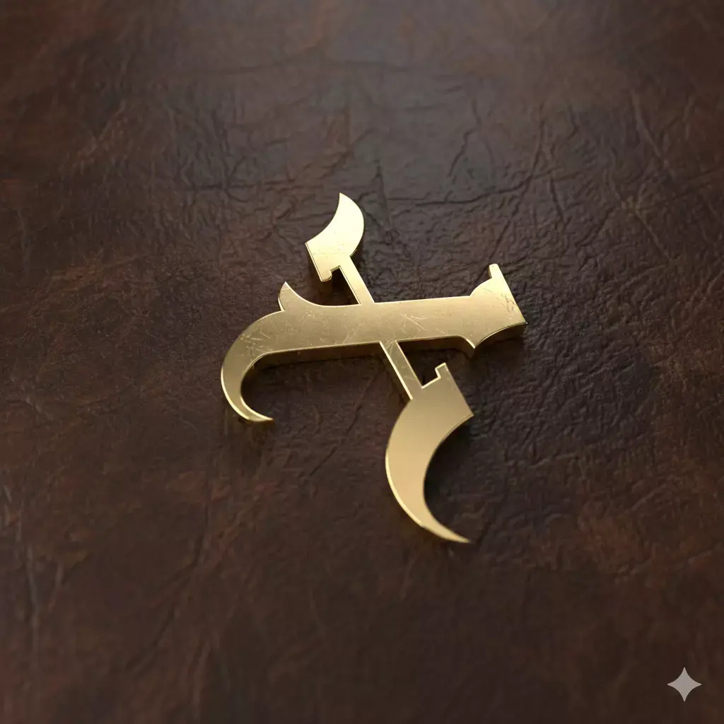 Gothic / Blackletter-inspired letterform with bold intersecting geometry