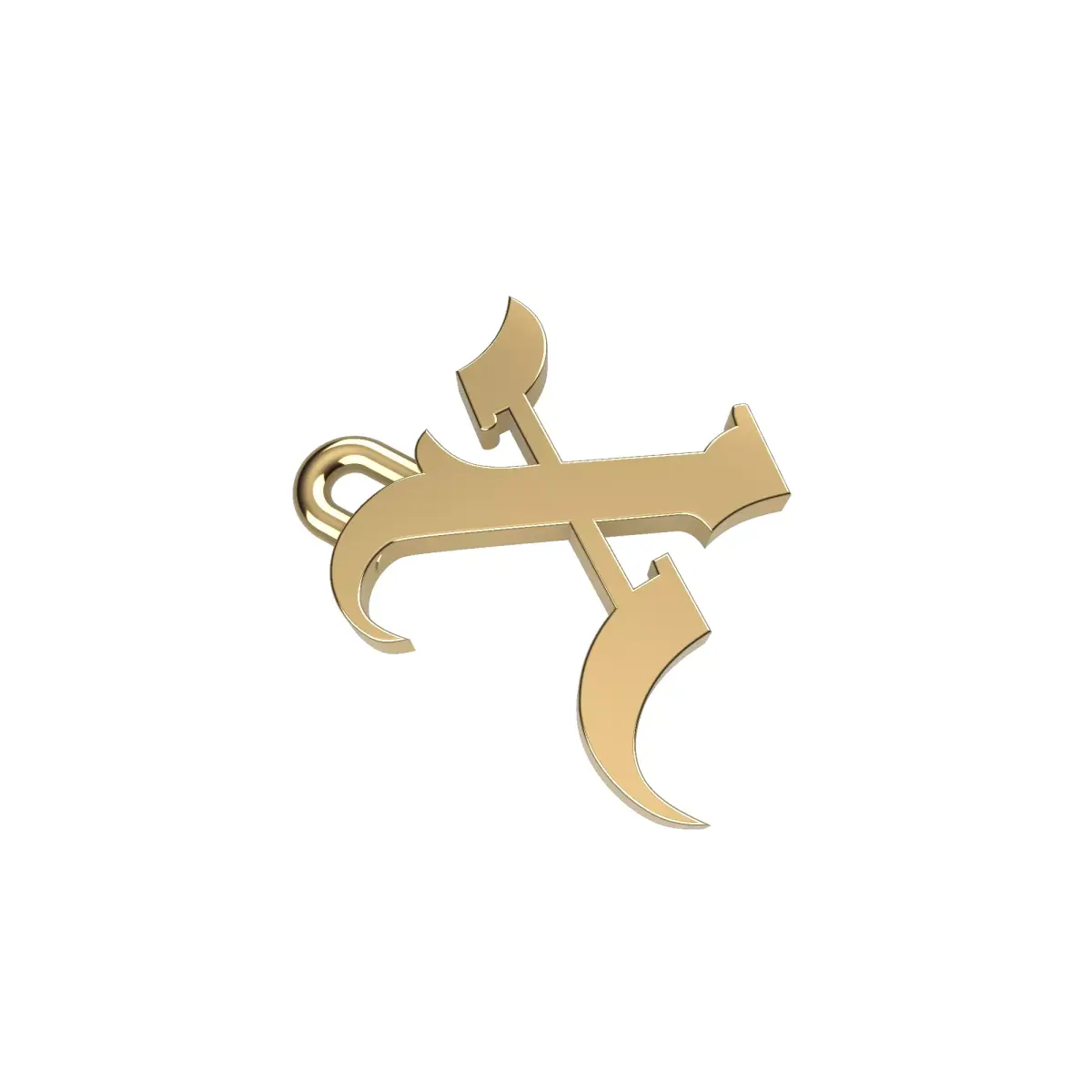 Thoughtfully proportioned for everyday wear, the pendant pairs seamlessly with a variety of chain styles and personal aesthetics. Whether worn alone for a confident minimalist look or layered with other pieces to build a more expressive style, its gothic character reflects individuality, strength, and timeless typographic influence.