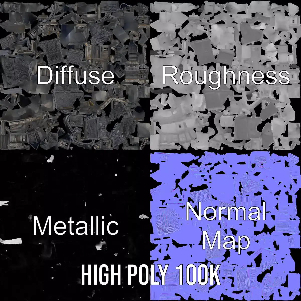 This Gothic Mansion model pack offers a detailed, architecturally gothic-inspired building ideal for horror games, historical simulations, or film renderings. Each model features three levels of detail: low-poly (1000 triangles) suitable for mobile, middle-poly (10,000 triangles) for environment setup, and high-poly (100,000 triangles) for production rendering in software such as 3ds Max, Maya, and Blender, and compatible with game engines like Unity and Unreal. The PBR materials with Diffuse, Normal Map, and reflection/roughness/metallic textures ensure high-quality visuals in any modern rendering engine. All models have 4096x4096 textures accurately unwrapped with no overlapping UVs. Perfect for creating an immersive atmosphere. If you enjoyed this model, please like and leave a comment.
