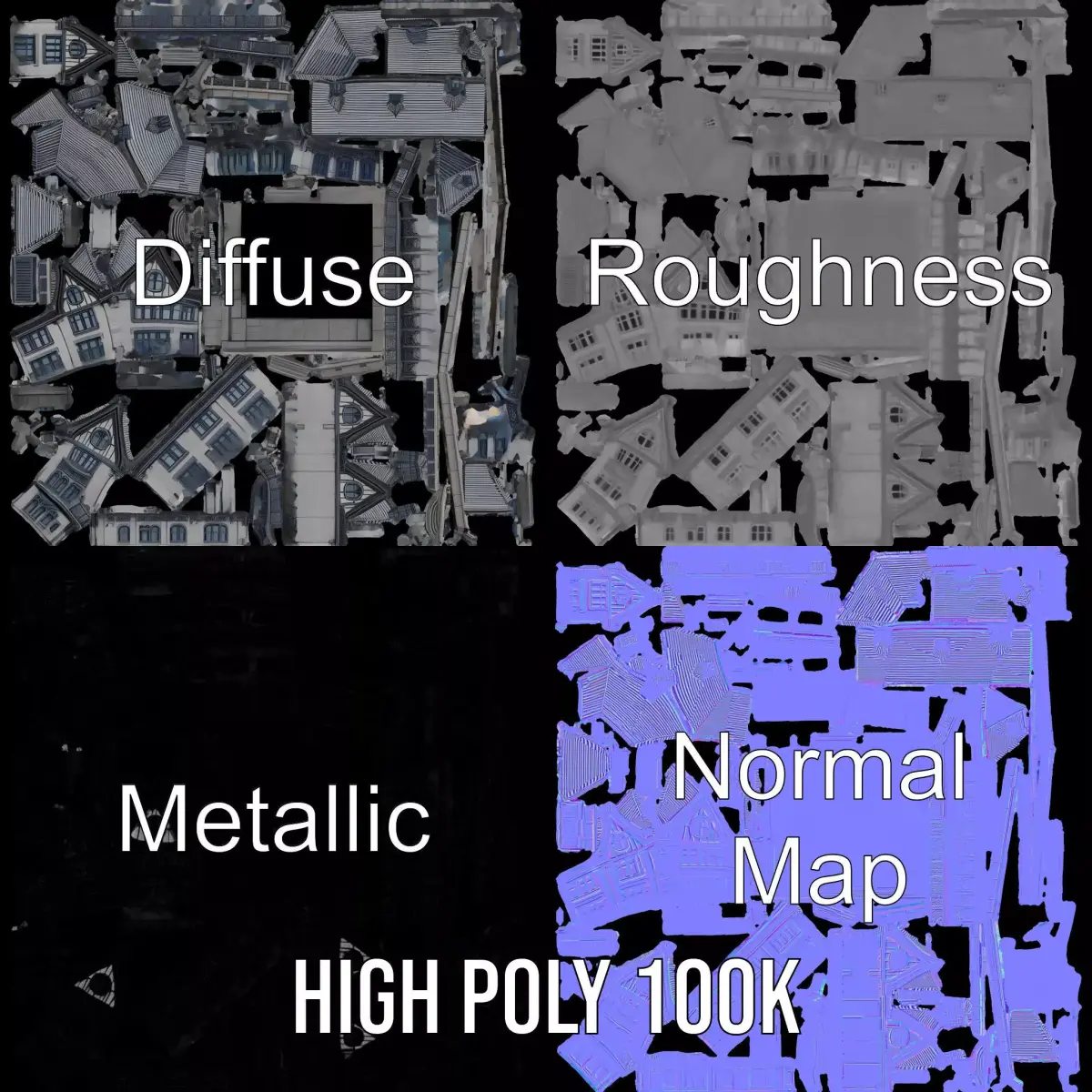 Textures are PBR, Diffuse, NormalMap, and reflection/roughness/metallic, suitable for any modern rendering engine. All models accurately unwrapped and have no overlapping UV. Textures are 4096x4096 in size.