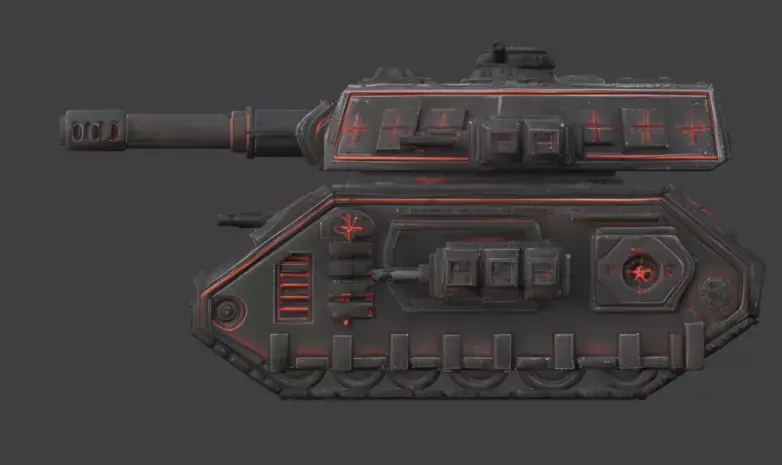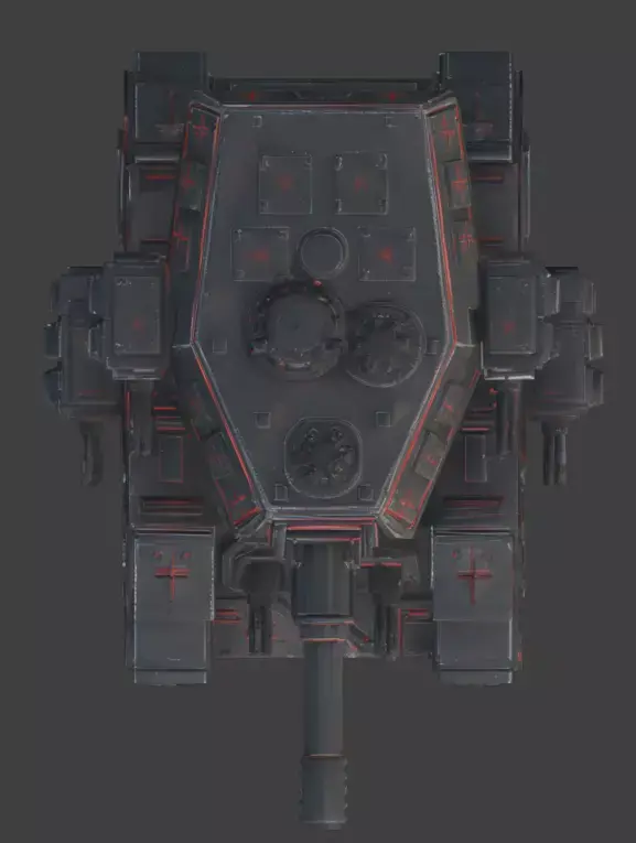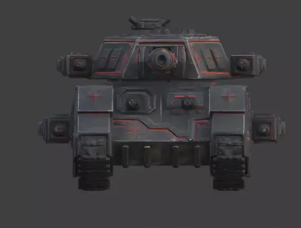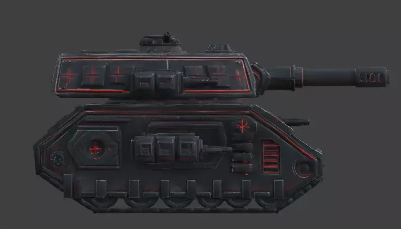 Tagshorror tank, gothic vehicle, occult siege, military asset, armored tank, dark fantasy, 3d model, game asset, weathered metal, glowing red, supernatural, sci-fi horror, war machine, heavy armor, cinematic prop, realistic, demonic, battle tank, macabre, 3d prop