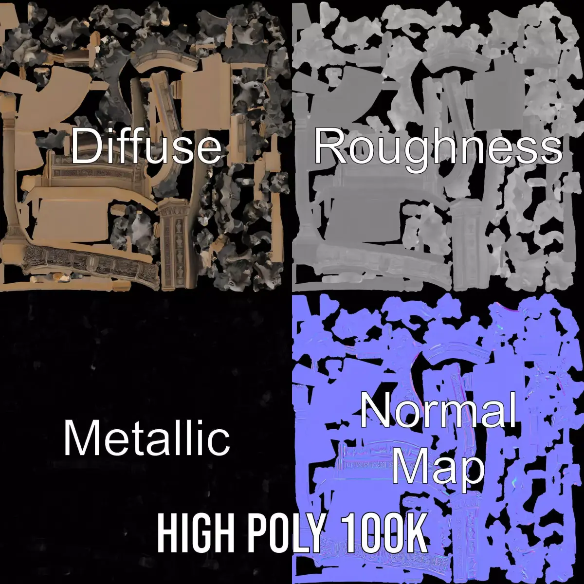 Discover the Gothic Skull Archway model pack, a stunningly detailed asset perfect for adding a mysterious and eerie ambience to your projects. This archway features intricate skull and tentacle designs, capturing gothic and horror elements beautifully. Each model is provided in three levels of detail: low-poly (1000 triangles for mobile), middle-poly (10,000 triangles for environments), and high-poly (100,000 triangles), making it versatile for use in high-quality production rendering, game engines like Unity and Unreal, as well as interactive presentations. The model's textures are PBR, Diffuse, NormalMap, and reflection/roughness/metallic, suitable for any modern rendering engine. All models are accurately unwrapped with no overlapping UVs, ensuring high-quality texture application. Ideal for use in horror games, fantasy environments, or gothic architectural visualizations. All textures are 4096*4096 in size. If you like this model, please give it a thumbs up and leave a comment!