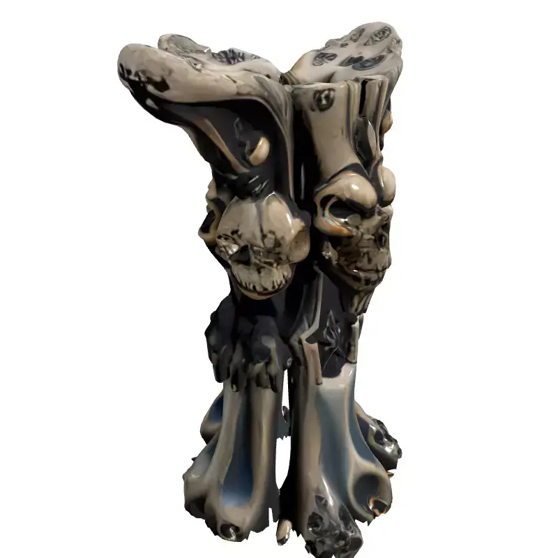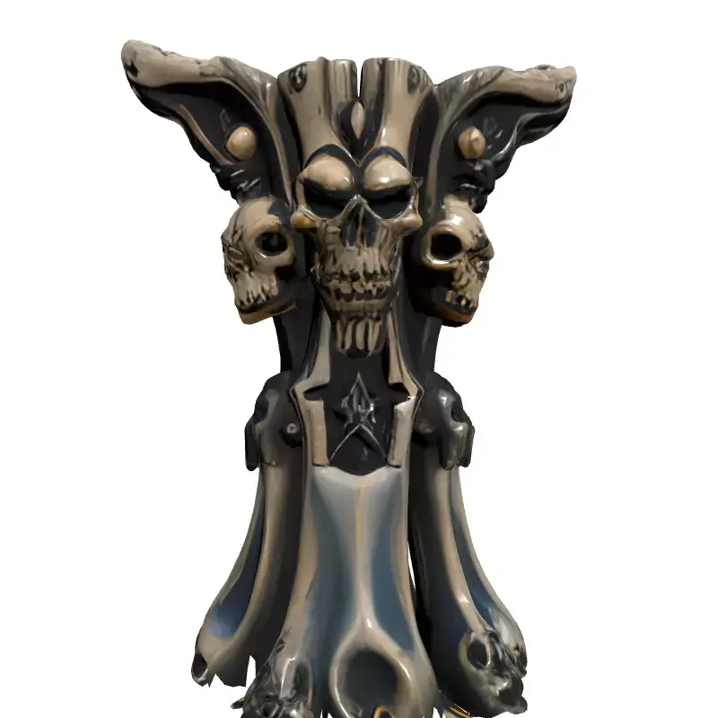This highly detailed 3D model represents an ornate, gothic-inspired pedestal or decorative pillar, featuring multiple skull motifs and intricate carvings. Its dark, imposing aesthetic makes it perfect for adding a touch of macabre fantasy to various digital projects. Ideal for use as an environmental prop in dark fantasy RPGs, horror games, or medieval-themed virtual reality (VR) and augmented reality (AR) experiences. It can also serve as a striking centerpiece in architectural visualizations of ancient ruins, haunted mansions, or mysterious catacombs. Digital artists will find it valuable for creating compelling renders, concept art, or as a base for custom sculpts. The model is designed with high detail, ensuring a visually rich asset for both close-up renders and distant environmental dressing. It is suitable for 3D printing, allowing for the creation of unique physical decorative items or tabletop gaming terrain. The asset boasts clean topology and is likely UV unwrapped, facilitating easy texture application and modification. It is supplied with high-quality PBR (Physically Based Rendering) textures, providing realistic material representation for various lighting conditions. Optimized for smooth performance in real-time game engines and suitable for high-resolution static renderings. Supported file formats include GLB, OBJ, STL (for 3D printing), ABC, DAE, FBX, USD, and PLY, ensuring broad compatibility across different 3D software.