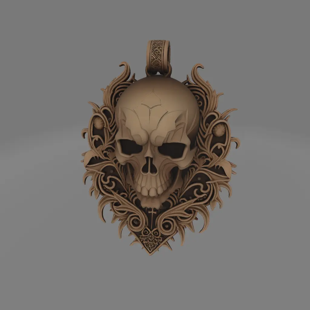 This 3D-printed gothic pendant features a finely detailed skull with sharp cheekbones, hollow eyes, and a textured surface that mimics aged bone. Surrounded by elegant gothic elements like miniature spikes, vines, and mystical runes, it’s designed with a discreet loop for easy necklace attachment. Perfect for dark fashion or alternative jewelry lovers.