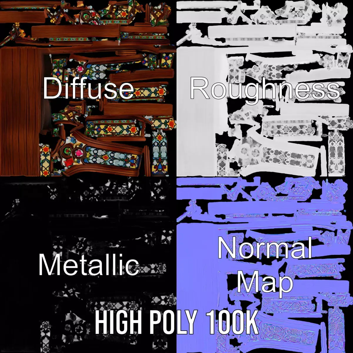 This Gothic Stained Glass Window model pack features beautifully detailed, vibrant stained glass set in a classic arched wooden frame. It captures the intricate designs typical of historical architecture, making it perfect for use in period games, films, or architectural visualizations. The model is available in three levels of detail: low-poly (1000 triangles) for mobile use, middle-poly (10,000 triangles) for environmental scenes, and high-poly (100,000 triangles) for production rendering. Compatible with game engines like Unity and Unreal, as well as rendering software such as 3ds Max, Maya, and Blender, it provides flexibility for any project. Textures are PBR, including Diffuse, NormalMap, and reflection/roughness/metallic, ensuring high-quality visual output. All models are accurately unwrapped with no overlapping UVs. Textures are 4096x4096 in size. If you enjoy this model, please like and leave a comment.