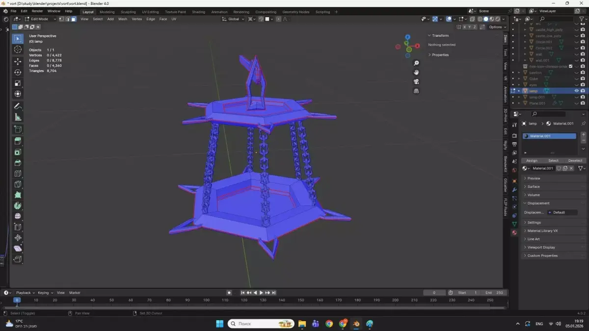 Gothic stylized medieval chain lamp Low-poly 3D model