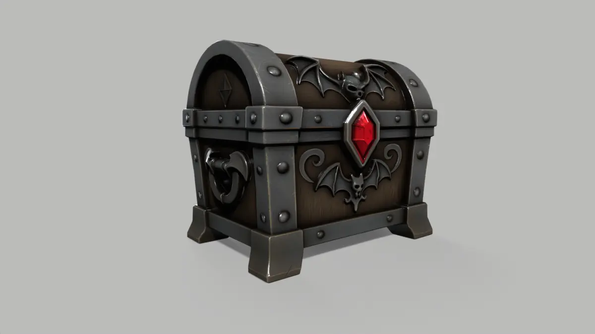 The Stylized Gothic Vampire Chest is designed to bring a dark, mysterious vibe to your fantasy, horror, or RPG games. With its hand-painted style textures, wood-metal hybrid look, red gemstone, and bat emblems, this loot chest fits perfectly in any dungeon or cursed castle setting.