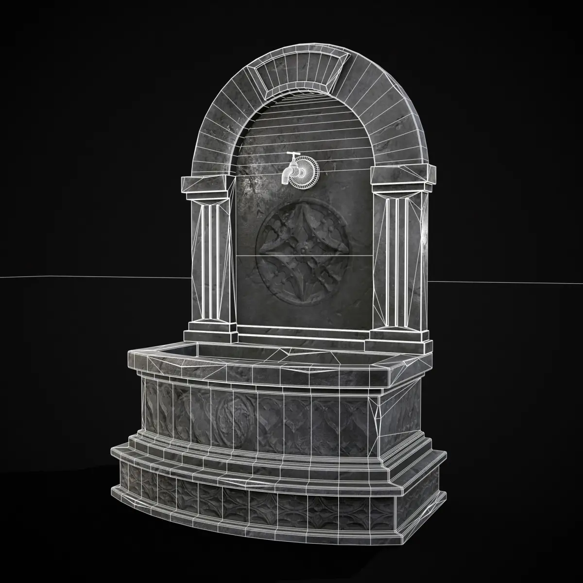 Gothic Wall Water Fountain - 3D Model Files Include FBX and OBJ. Includes PBR Texture in 4096 x 4096. - Maps include : Basecolor, Normal, Roughness, Height and Metallic. Detail Normals included. All Preview renders were done Marmoset Toolbag 4. Scaled to real world scale. Customer Service Guaranteed. From the Creators at Get Dead Entertainment. Please like and Rate! Follow us on FaceBook and Instagram to keep updated on all our newest models. Model can be used for any purpose except resale or redistribution of the asset if not used in a game, commercial or media project.