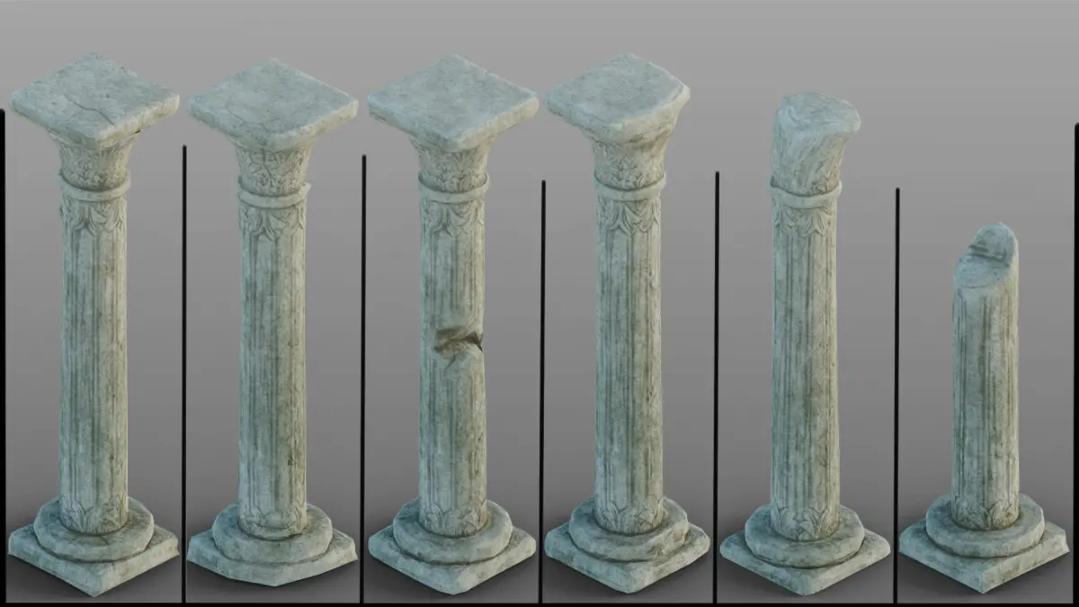 This pack contains 6 different pillars, for extra variety, with two different LOD versions. Higher LOD version can be used for close-ups and important scenes, while lower is optimised for use in the distance or video games. Textures for both LOD versions provided in 1,2, and 4K resolution.LOD0 faces: 5.947 - 3.129LOD1 faces: 669 - 351