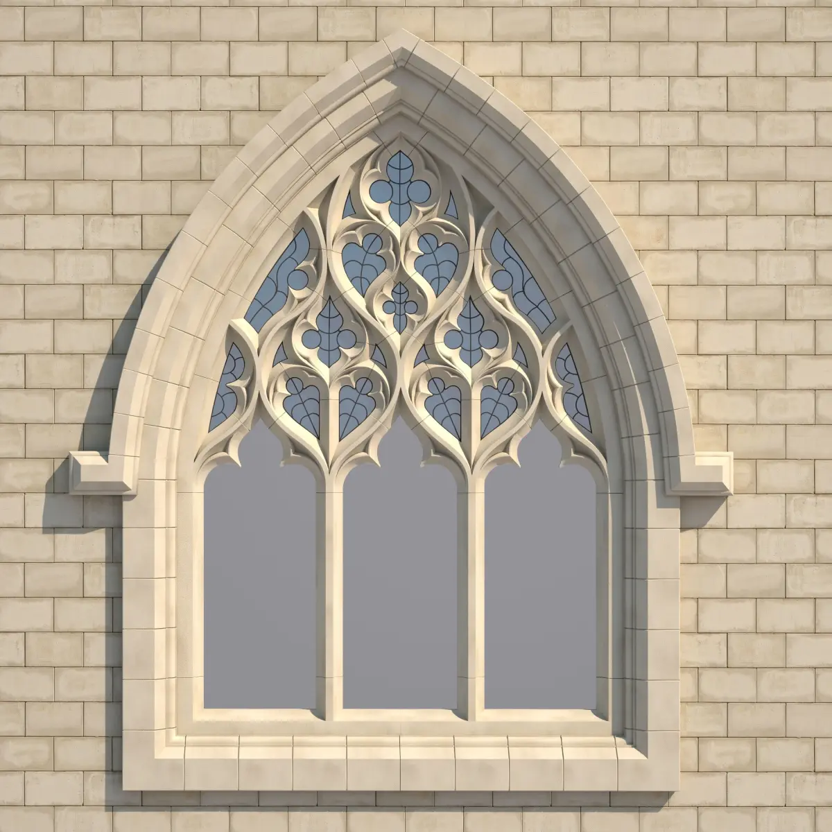 The model has a fully detailed design that allows for close-up rendersHigh resolution 3D model of a Gothic Window, modeled in 3dsMax.