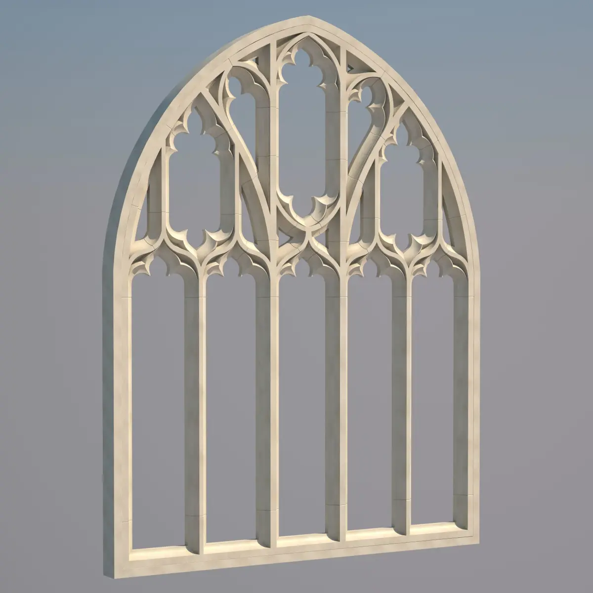 The model has a fully detailed design that allows for close-up rendersHigh resolution 3D model of a Gothic Window, modeled in 3dsMax.
