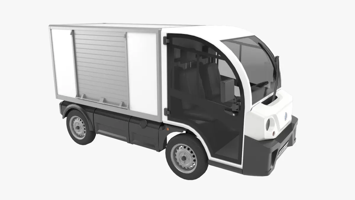 The Goupil G4 is a lightweight electic utility vehicle used for parcel delivery and parkside utilities.