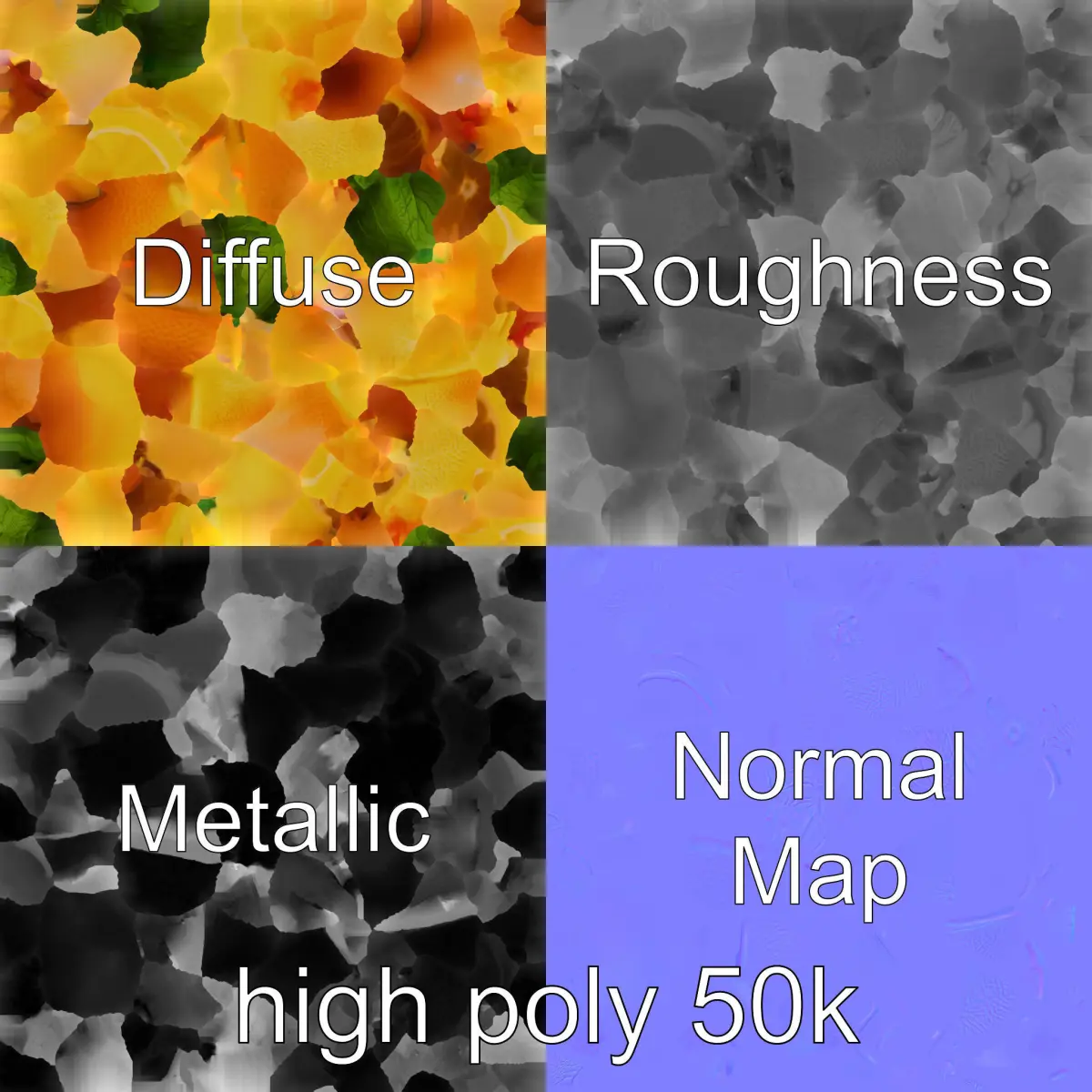 The Gourmet Citrus Sorbet model pack offers a premium 3D representation of a delicately crafted orange sorbet served in a hollowed citrus shell, garnished with candied zest and fresh mint leaves. Each model has 3 levels of detail: low-poly, middle-poly, and high-poly, facilitating its use in production rendering (such as 3ds Max, Maya, Cinema 4D, Blender, V-Ray/Corona/Cycles and others), game engines (Unity and Unreal compatible), and interactive presentations. This versatile applicability enables a tailored approach based on the LOD System principle. Ideal for culinary simulations, virtual reality dining experiences, or high-end marketing visuals, the model's textures, including PBR, Diffuse, NormalMap, and reflection/roughness/metallic, ensure seamless rendering in modern engines. All geometry is accurately unwrapped with no overlapping UVs. Please note that all textures are 4096*4096 in size. Enjoy exploring its use, and if you like the model, please leave a like and comment!
