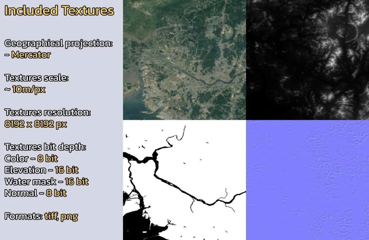 - Textures resolution: ~10m/px