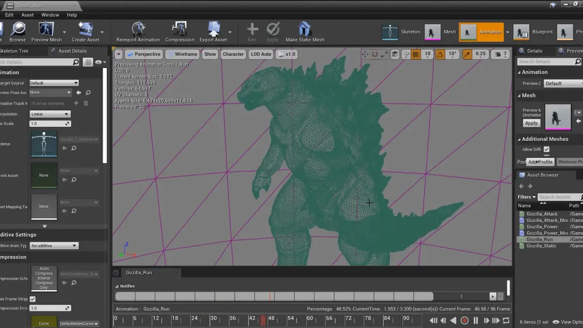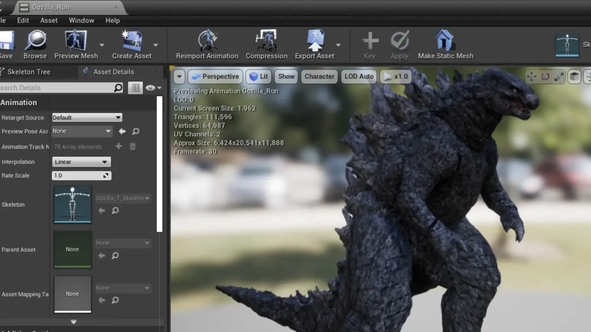 Gozilla Unreal Engine 4 Low-poly 3D model