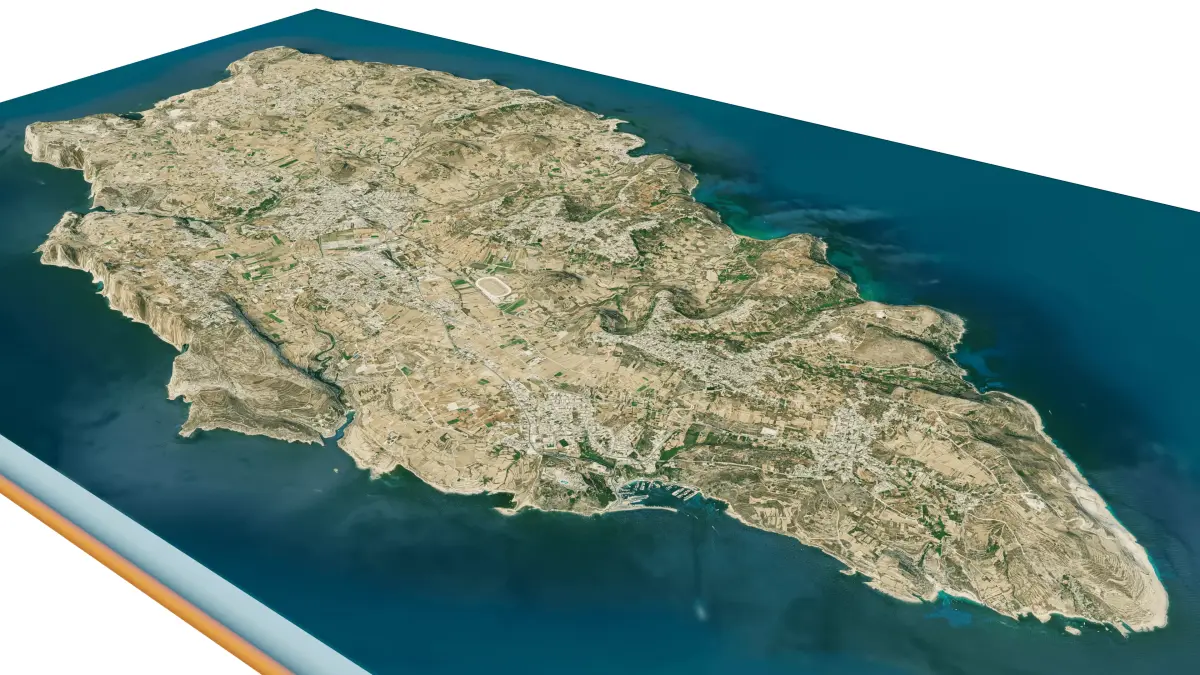 3d model landscape of Gozo Island, Maltese islands, Mediterranean Sea, Malta.