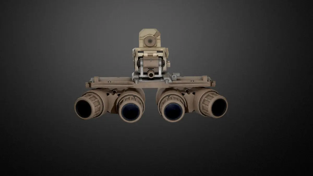 Ground Panoramic Night Vision Goggle for helmets. low-poly 3d model ready for Virtual Reality (VR), Augmented Reality (AR), games and other real-time apps.