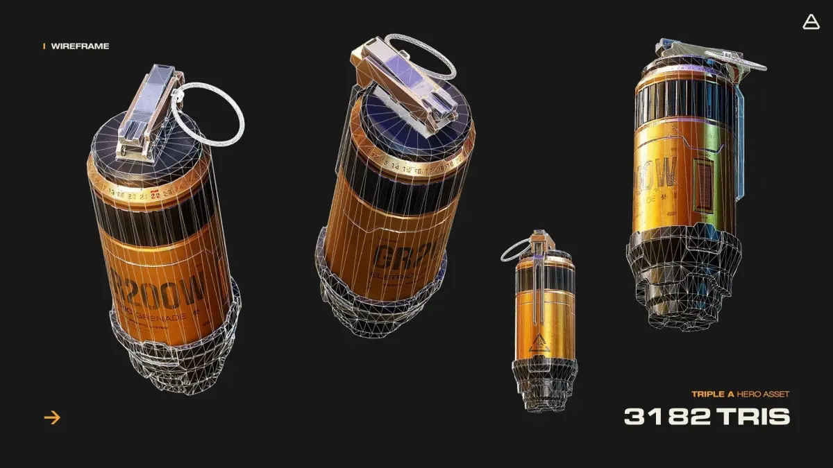**Granade **concept by me with PBR texture and low poly game ready otimized for real time renders and engines.
