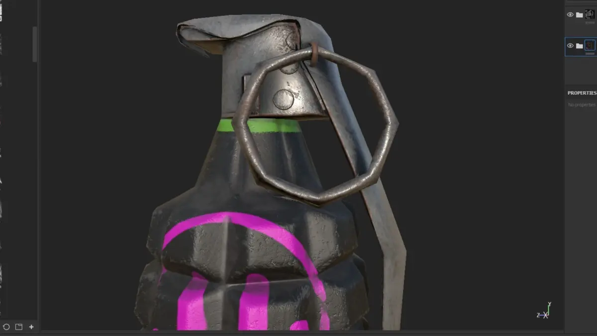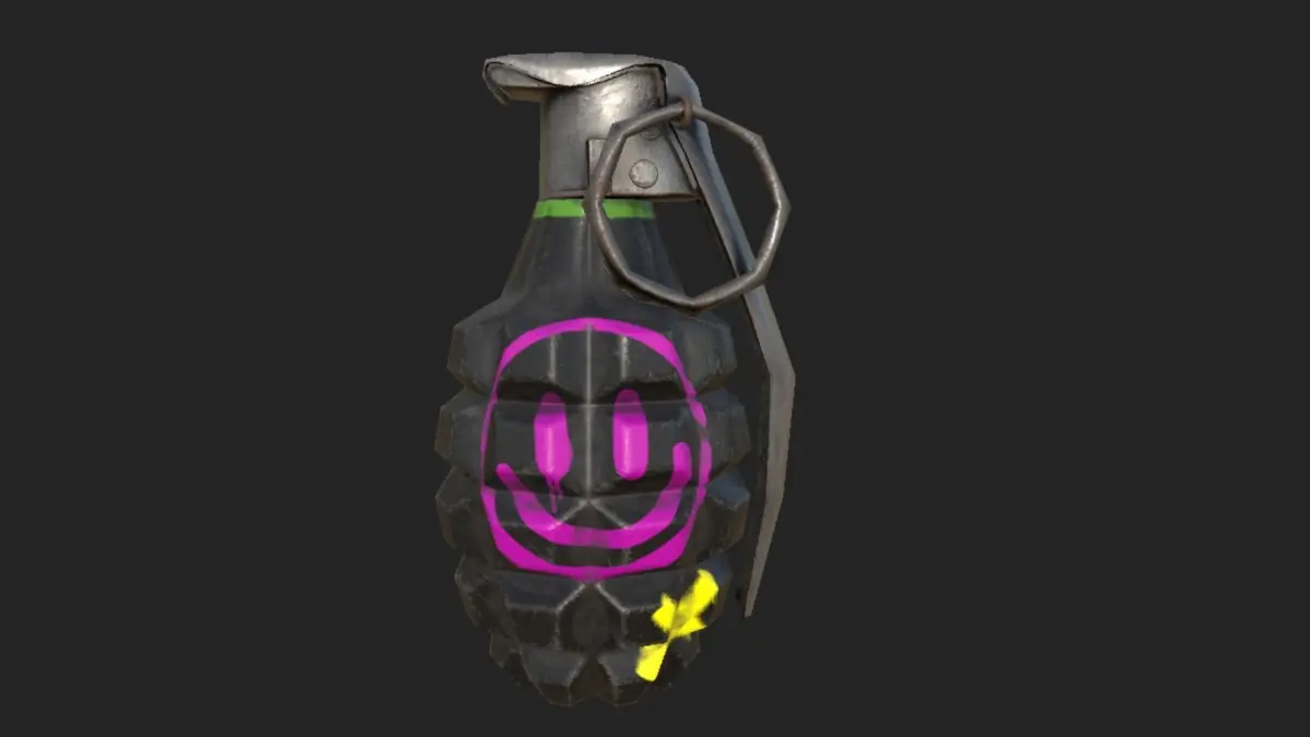 Formats=/.blend (native) /.dae /.abc /.obj /.fbx /.ply /.stl /.usdc /.x3d /.glb ///Contains=Grenade(Verts: 569)/4k textures/2k textures(created in Substance painter)///Textures= (Base color; Metallic; Roughness; Normal; Displacement) 16 bits///
