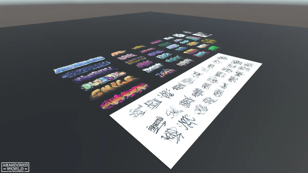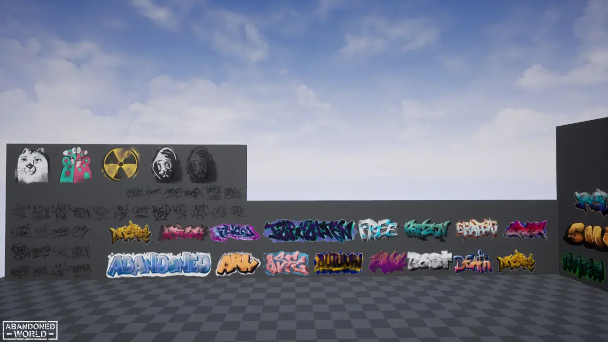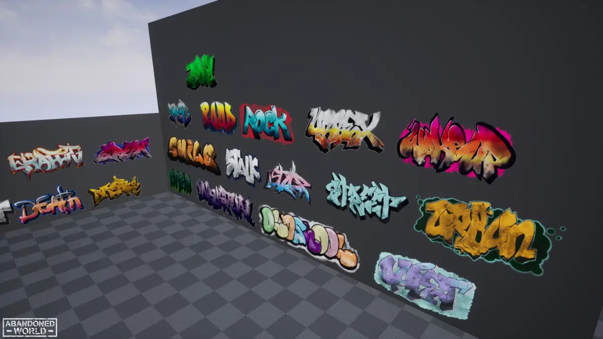 A package containing many different graffiti and tags. For Unreal Engine, Unity