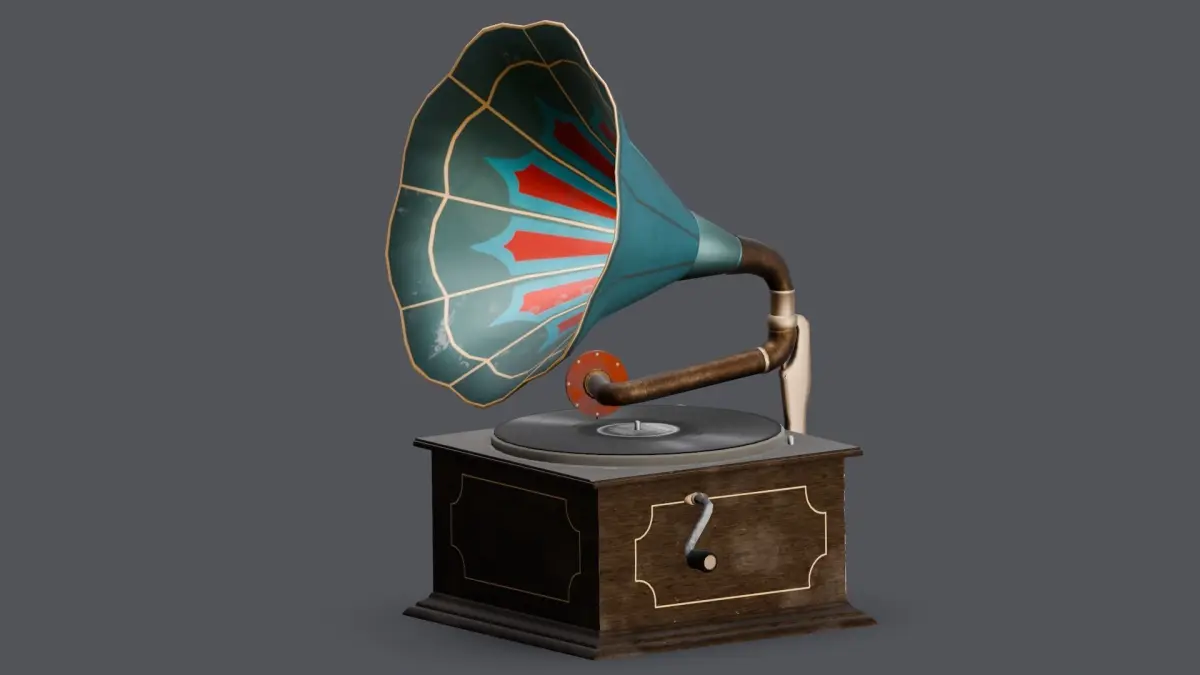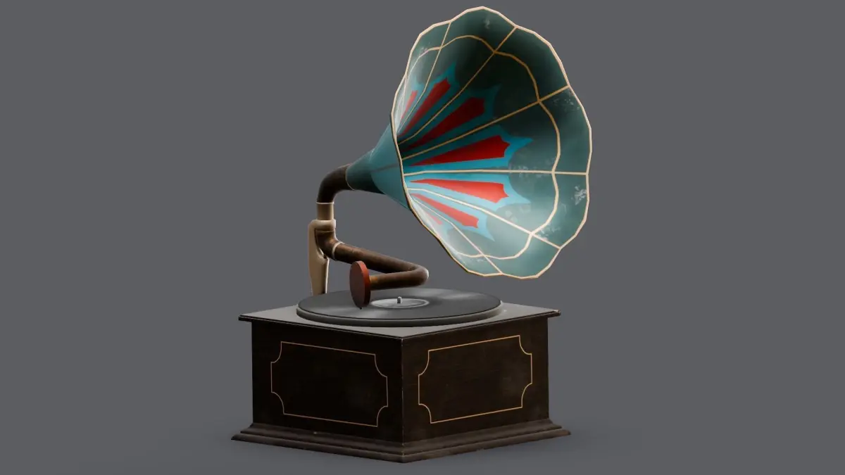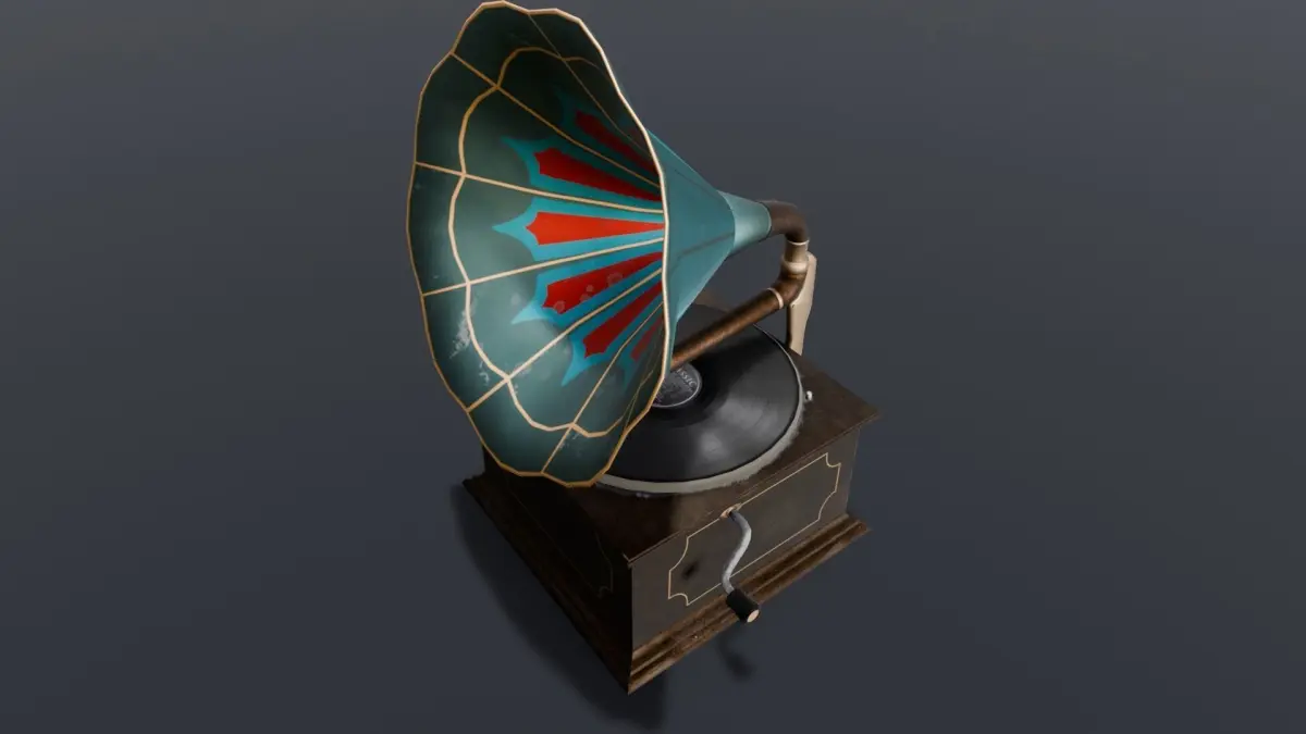 Materials:A variety of materials have been utilized to define the surface properties of the gramophone. These materials replicate different attributes such as reflectivity, glossiness, and texture variations, contributing to a realistic and authentic appearance.