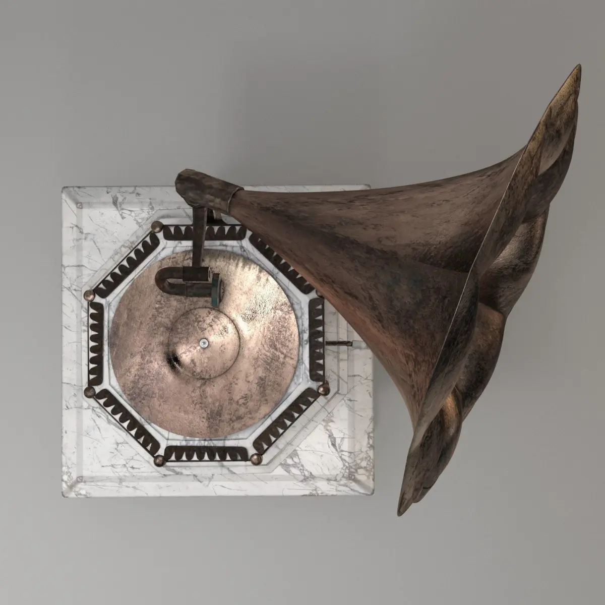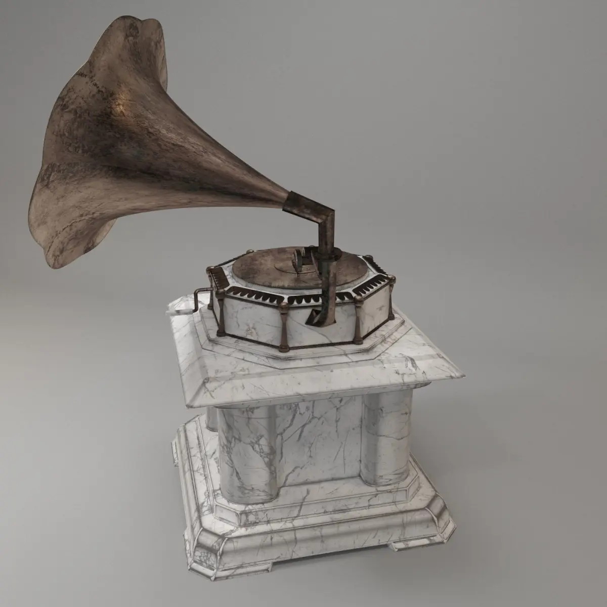 3d Model of Gramophone Statue. You will have a max files 2020 and 2017, OBJ file, FBX file, textures maps and materials