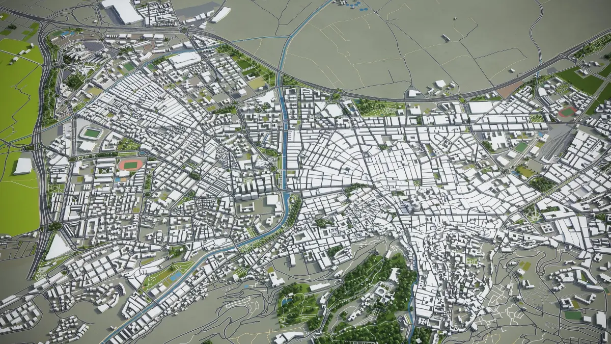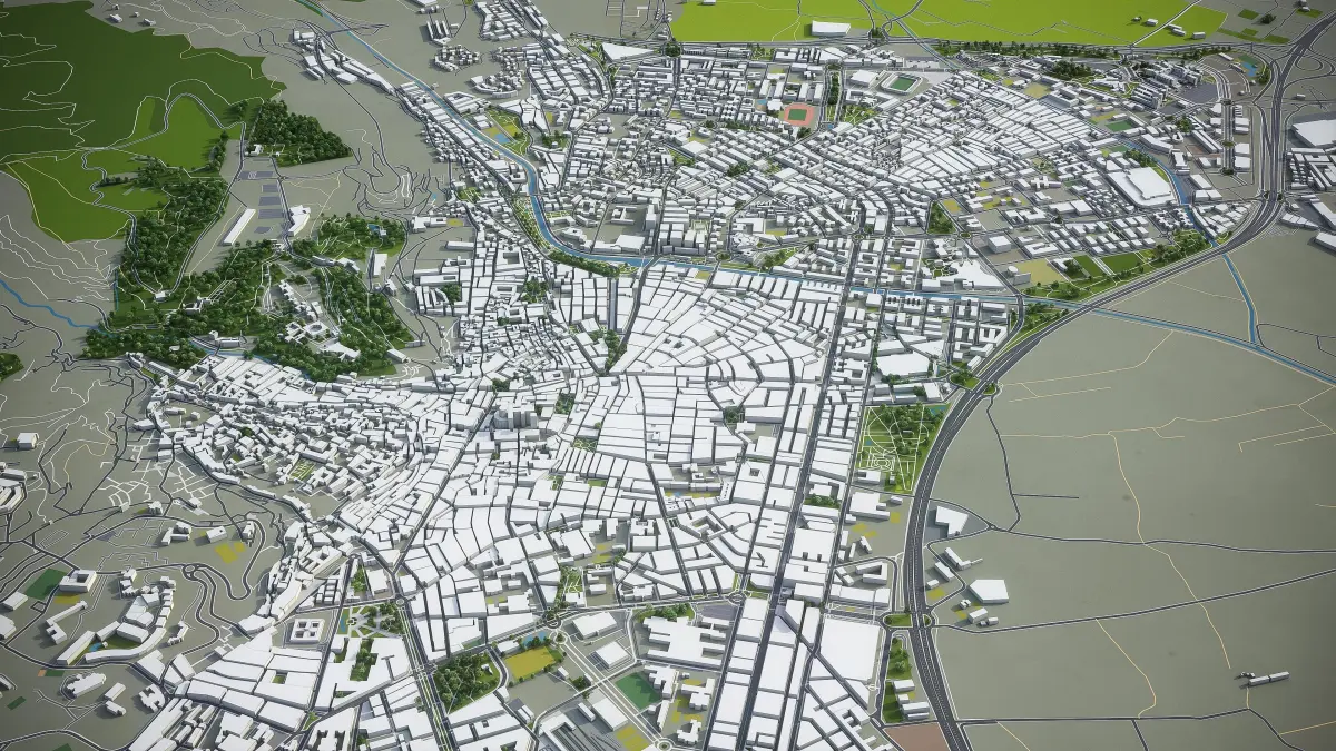 - Full city extents up to 100 x 100 km — or crop to an area of interest for better format compability and scene performance