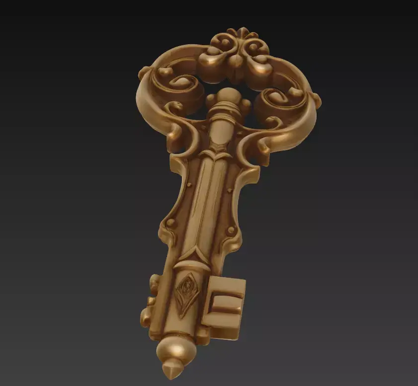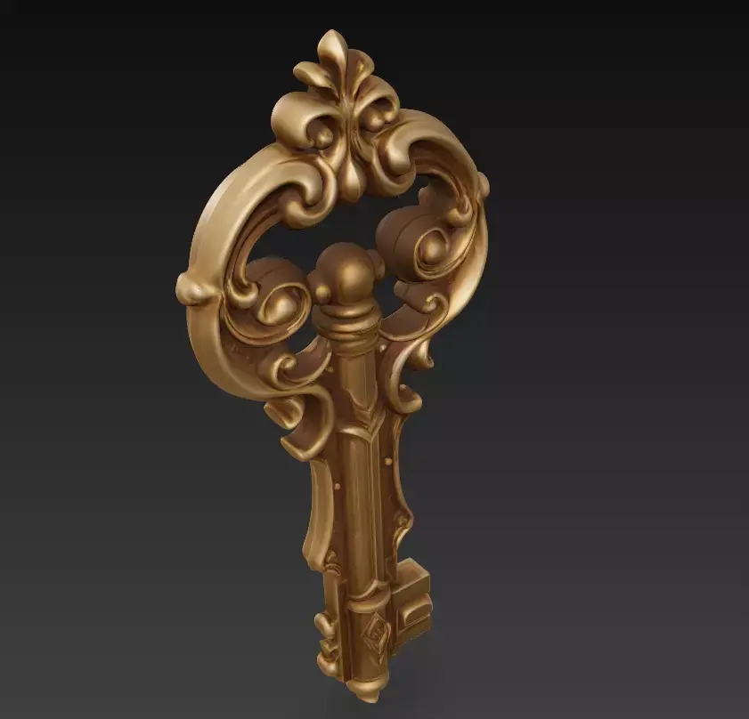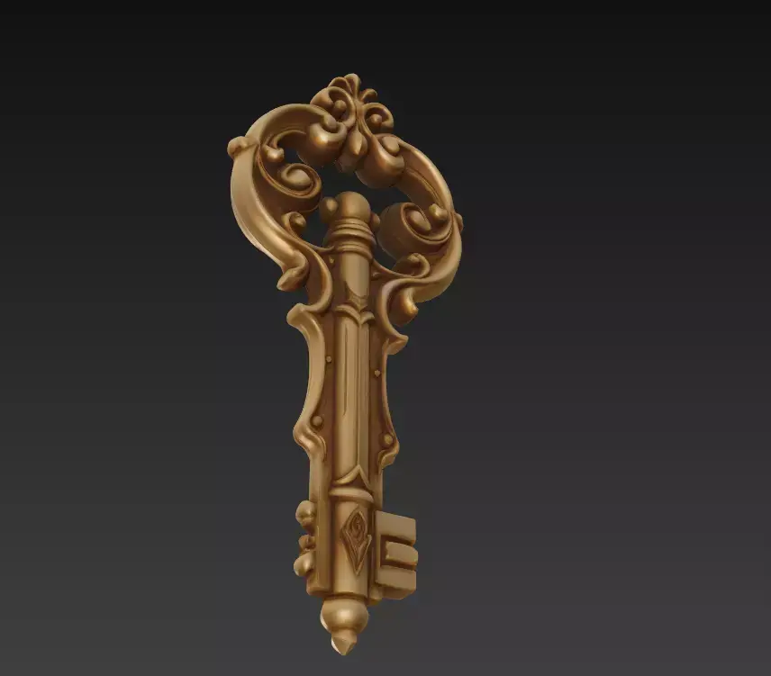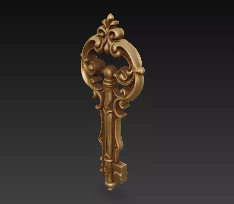 A finely sculpted baroque-style key inspired by royal architecture and ornamental metalwork.The Grand Baroque Key blends classic curves with detailed engravings, reflecting both luxury and artistic mastery.Ideal for fantasy art, collectible sculptures, jewelry design, and 3D printed décor.
