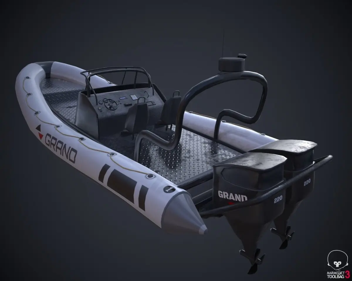 Grand inflatable dinghy boat modeled to real-life references. Low-poly and pbr textured. Suitable for game and AR/VR use.faces: 22900verts: 22900