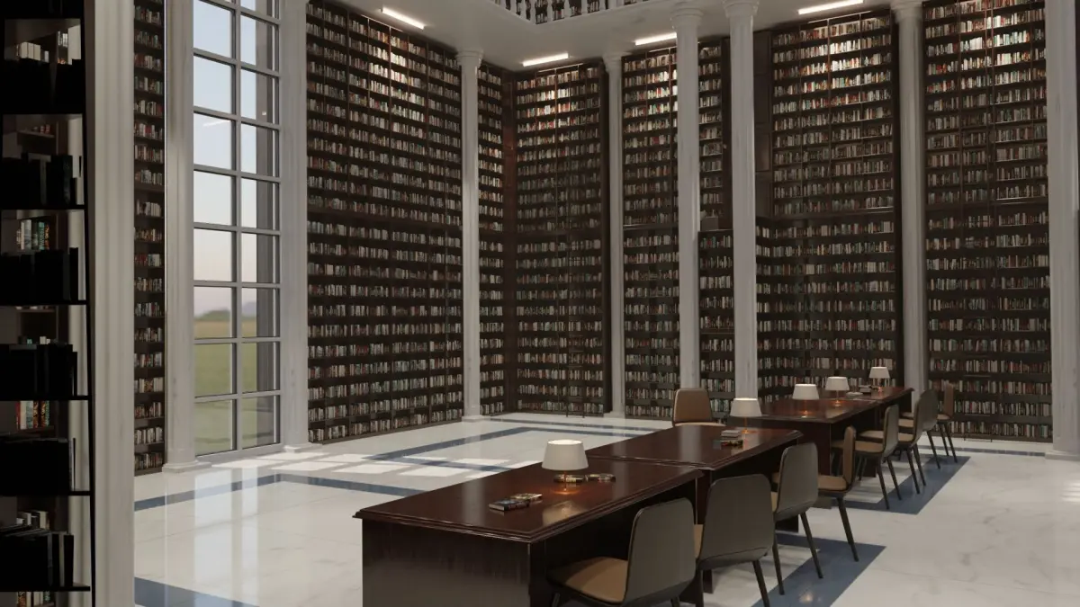 Immerse your audience in a world of knowledge and beauty with this exquisite 3D library model, now with unprecedented customization flexibility!