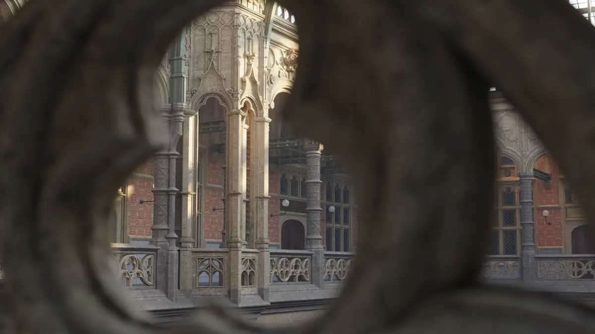 A photorealistic model of a grand Gothic-style hall inspired by the Gothic revival, 19th century Handelsbeurs stock exchange building in Antwerpen, Belgium