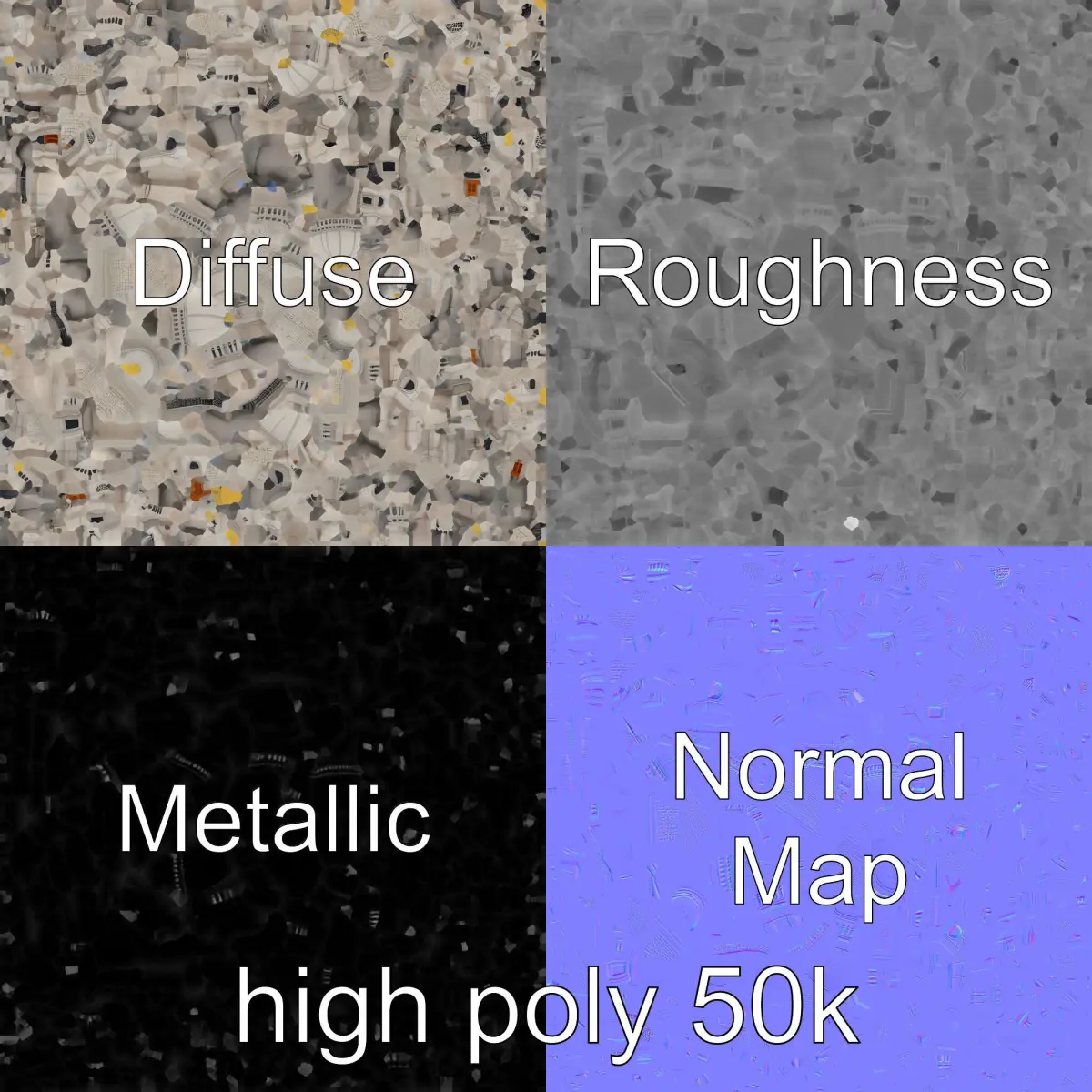 The model's textures are PBR, Diffuse, NormalMap, and reflection/roughness/metallic, suitable for any modern rendering engine. All models are accurately unwrapped and have no overlapping UVs. Textures are 4096*4096 in size.