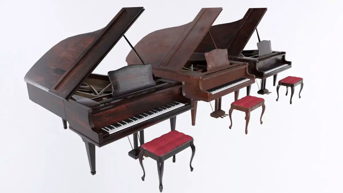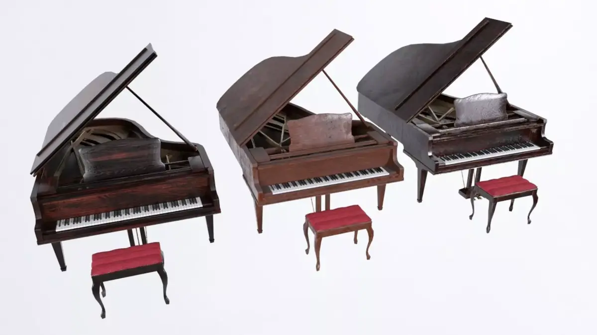 Poly model of a piano. Model and materials are clearly labelled with pivots in the correct locations. Everything is to real world scale and located at world 0 on the grid. Textures are at 1k and include diffuse, specular and normal maps.