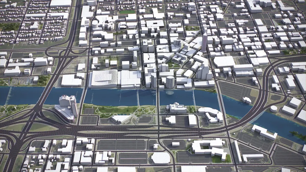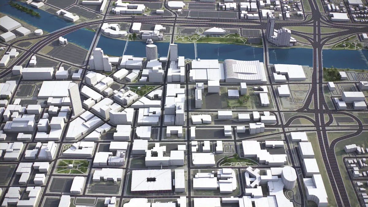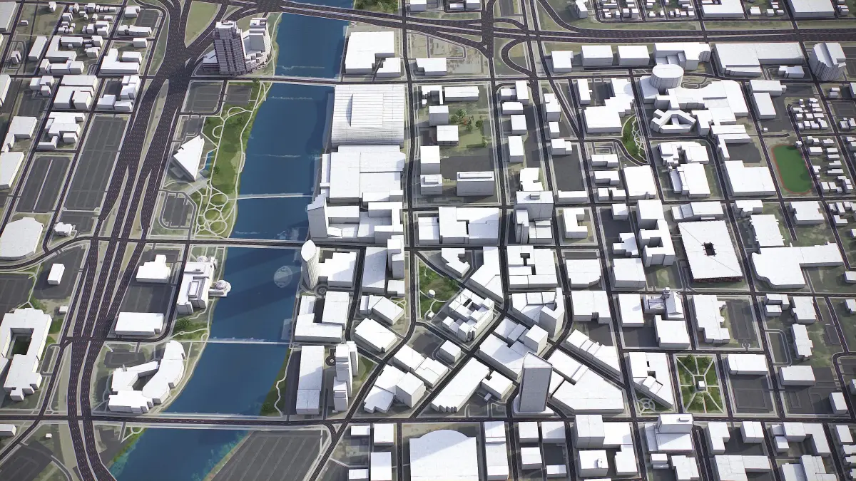 - Full city extents up to 100 x 100 km — or crop to the area of interest for better format compability and scene performance