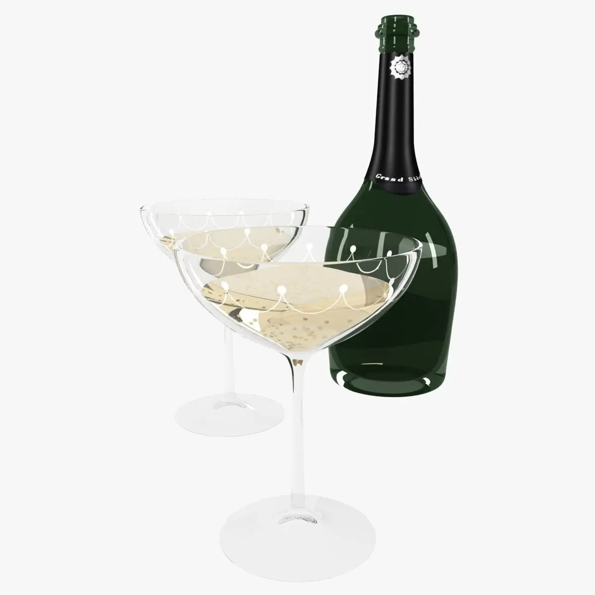 This is high poly botle with glasses.Rendered in vray.Stack not collapsed.Textures included.Model tested checkmate light program.