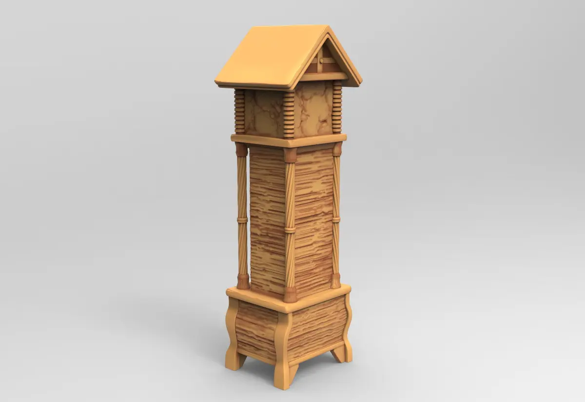 This is a print ready model of a antique Grandfather Clock and it is 28 mm model.you can rescale it and that not affected to the details of the model. A grandfather clock (also a longcase clock, tall-case clock, grandfather's clock, or floor clock) is a tall, freestanding, weight-driven pendulum clock with the pendulum held inside the tower or waist of the case. Clocks of this style are commonly 1.8–2.4 metres (6–8 feet) tall with an enclosed pendulum and weights suspended by either cables or chains which have to be calibrated occasionally to keep the proper time. Amazing miniature asset for your collection..