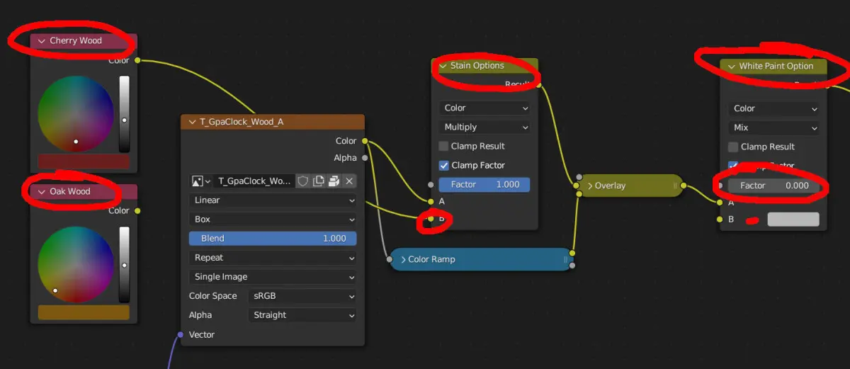 - The wood finish material with settings available for three different variations: Cherry, Oak, and White